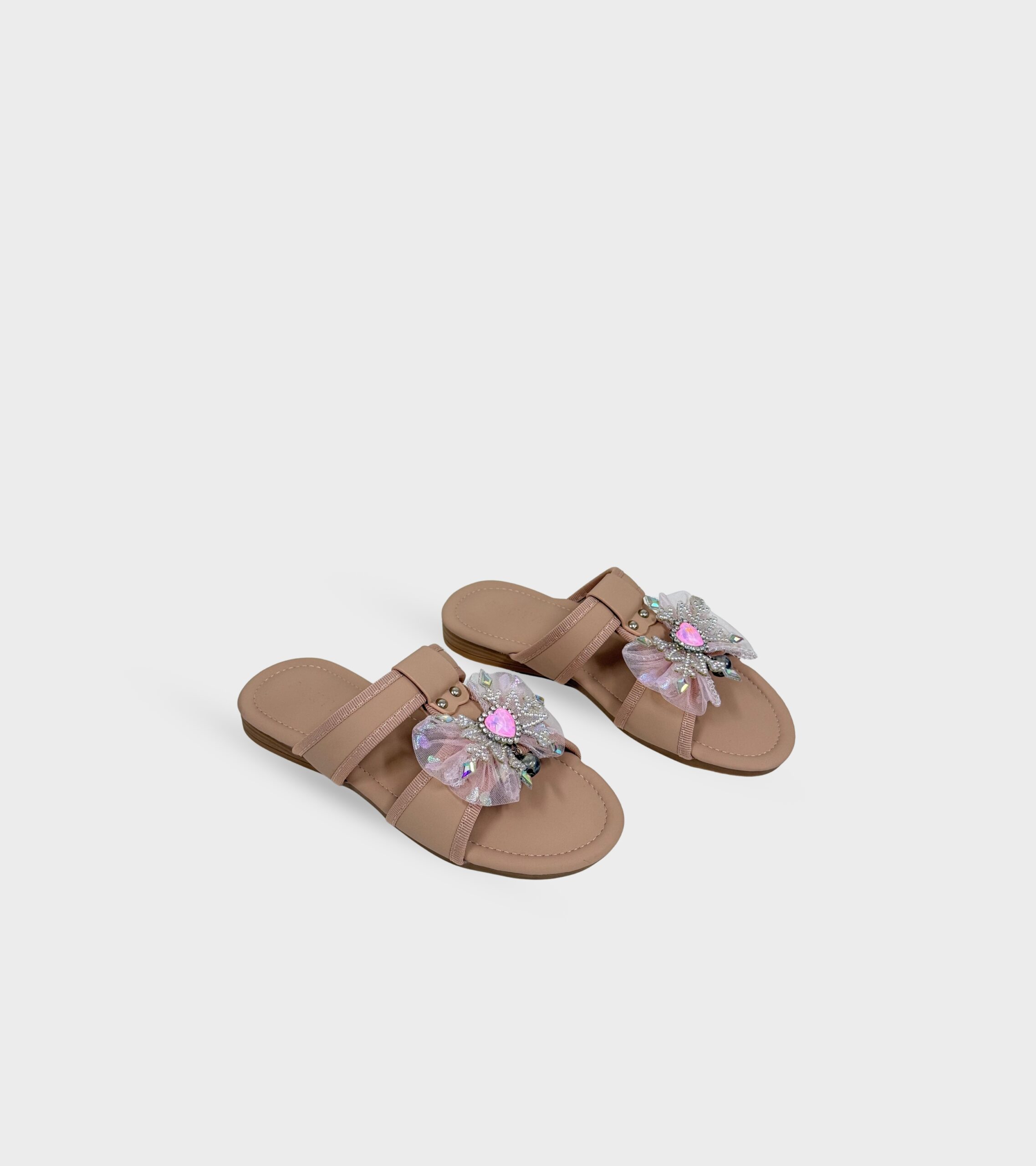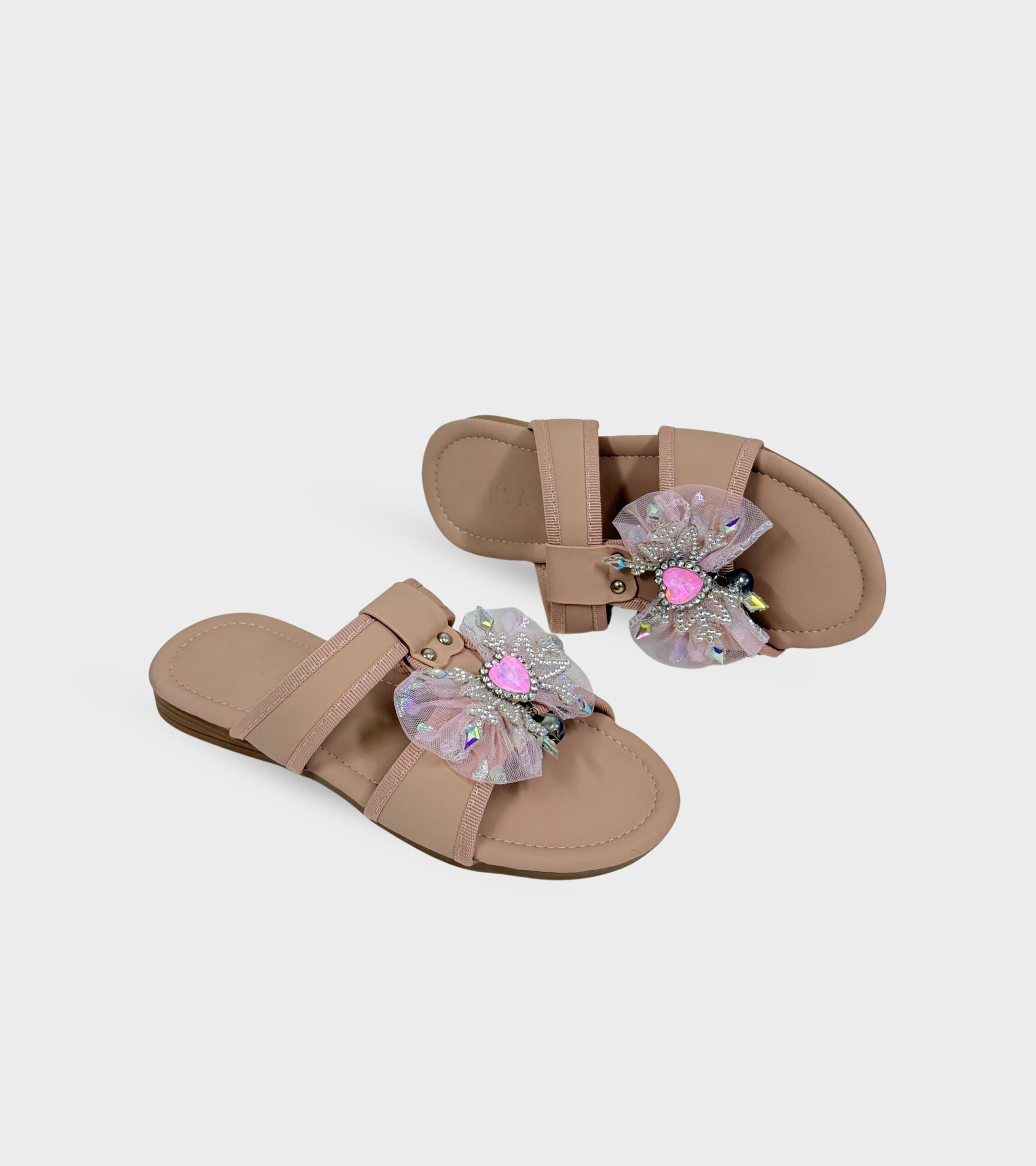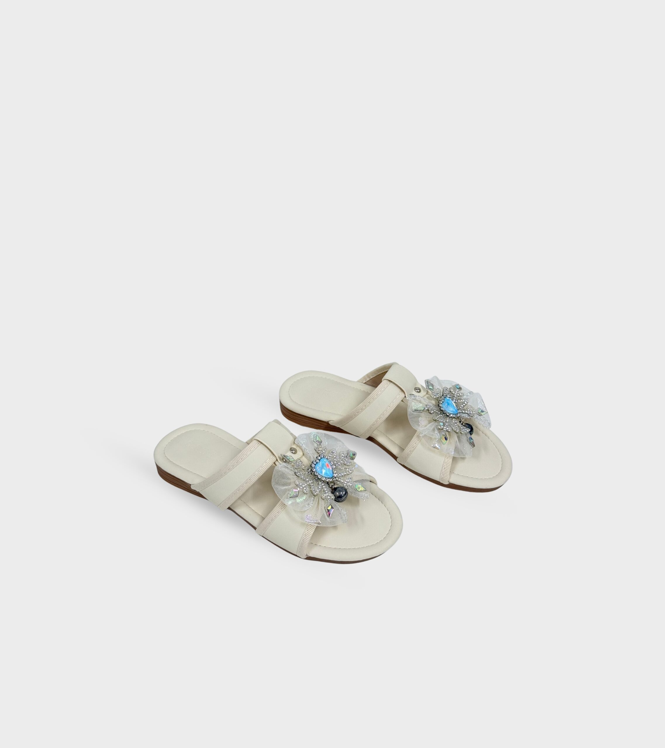 The slip-on design ensures easy wear, while the soft cushioned footbed keeps feet comfortable throughout the day. Lightweight and flexible, these sandals are perfect for parties, outings, or simply adding a bit of shine to everyday looks. Sweet, stylish, and effortlessly fun—made for little ones who love to sparkle.
